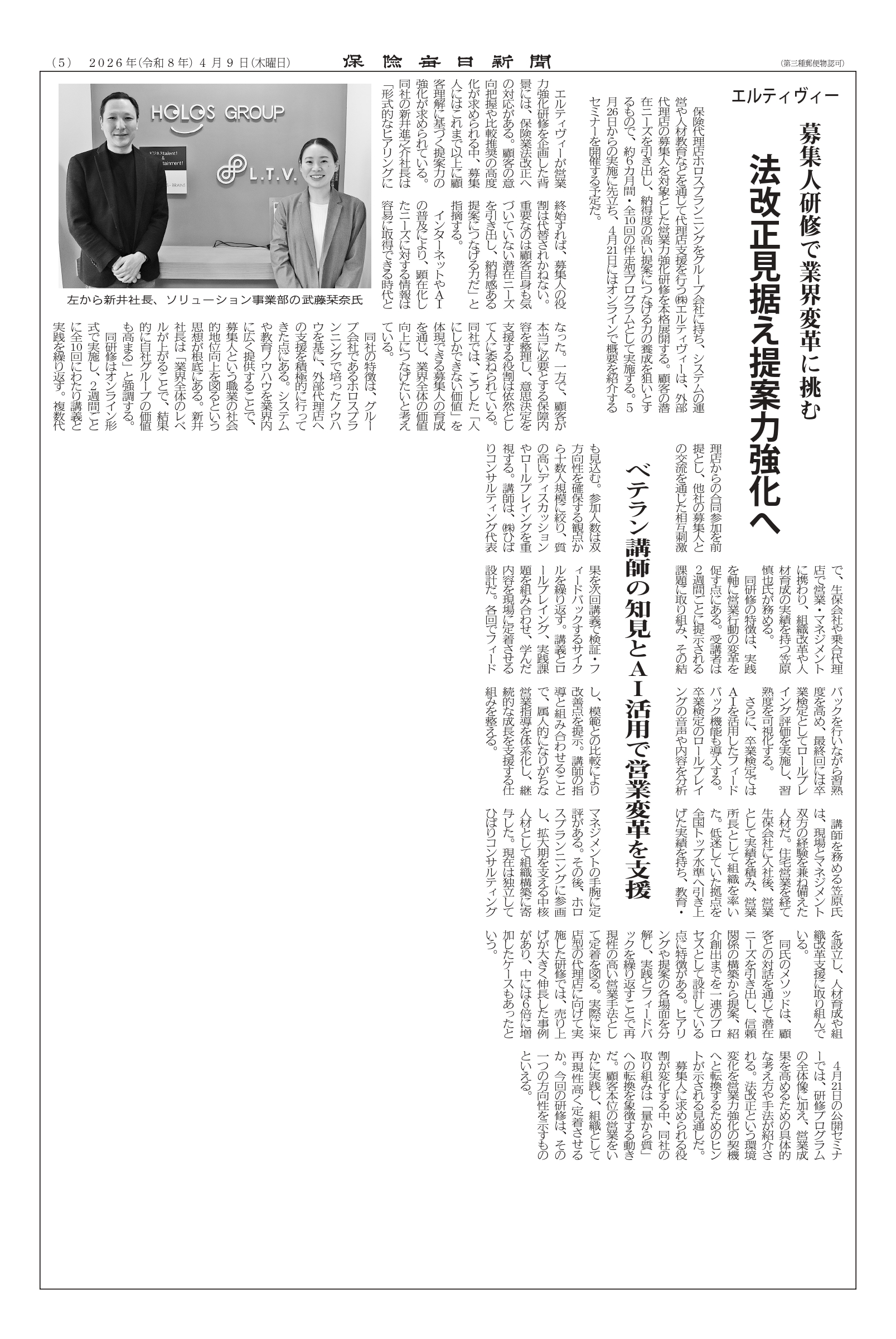 【メディア掲載情報】募集人変革プログラムが保険毎日新聞に掲載されました!