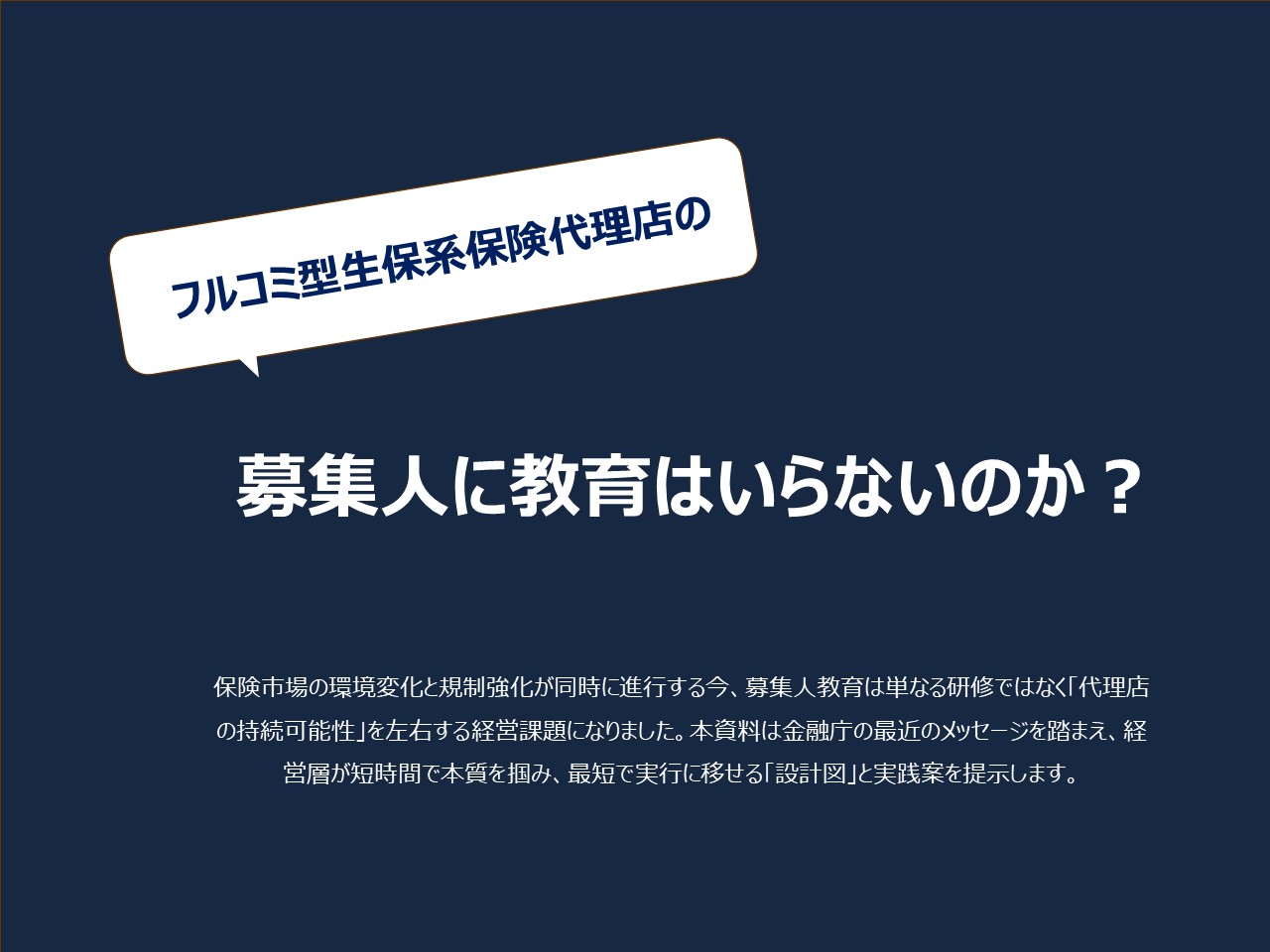フルコミ型生保系保険代理店の募集人に教育はいらないのか?